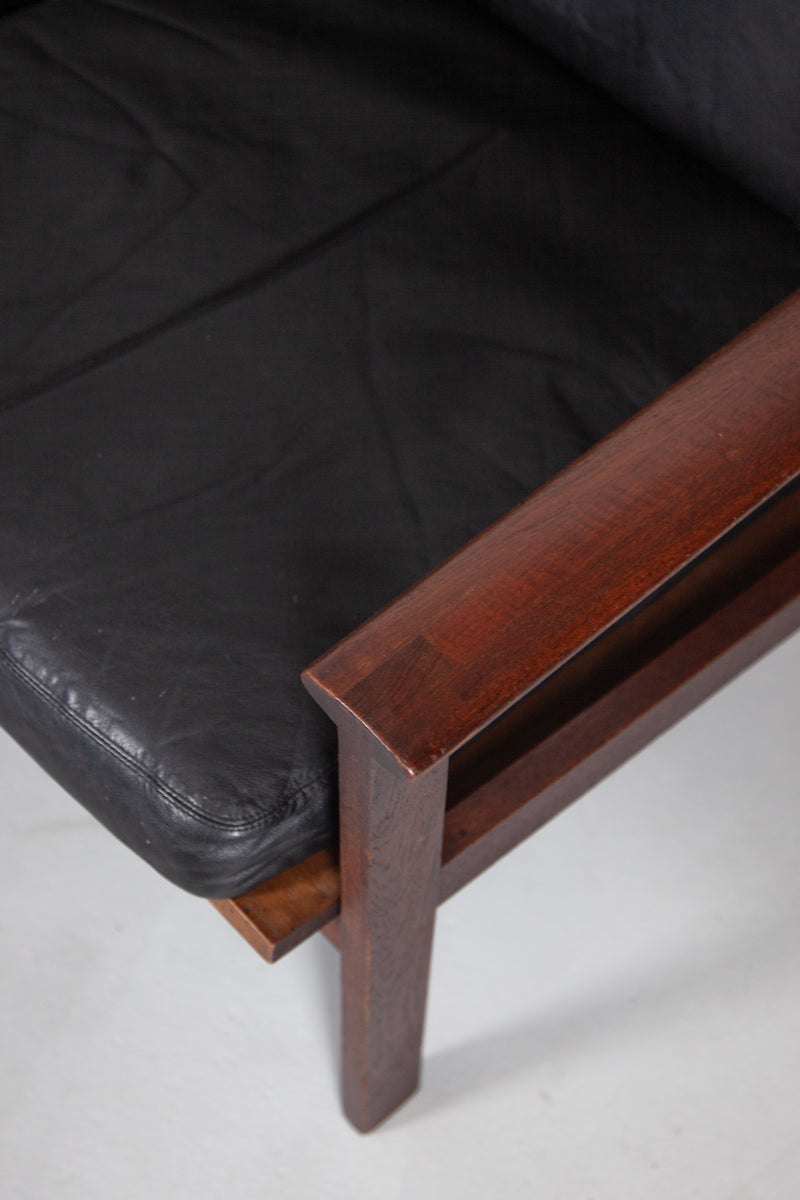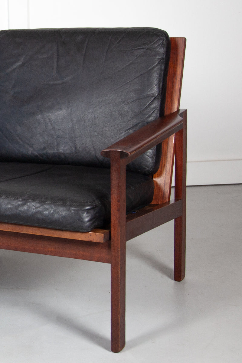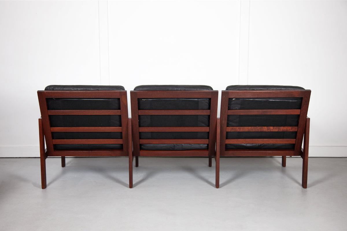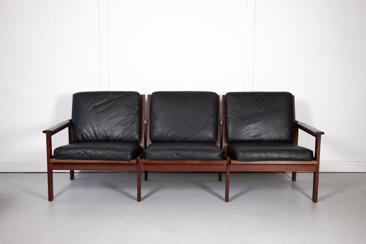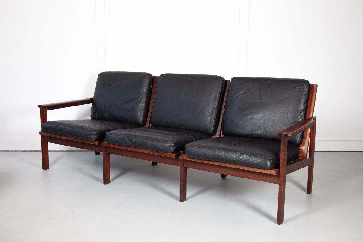 Black Leather Danish Three Seat Sofa by Illum Wikkelsø