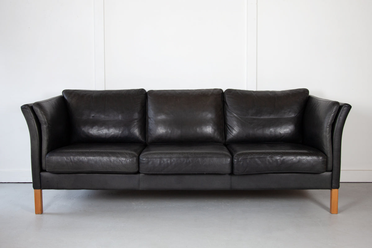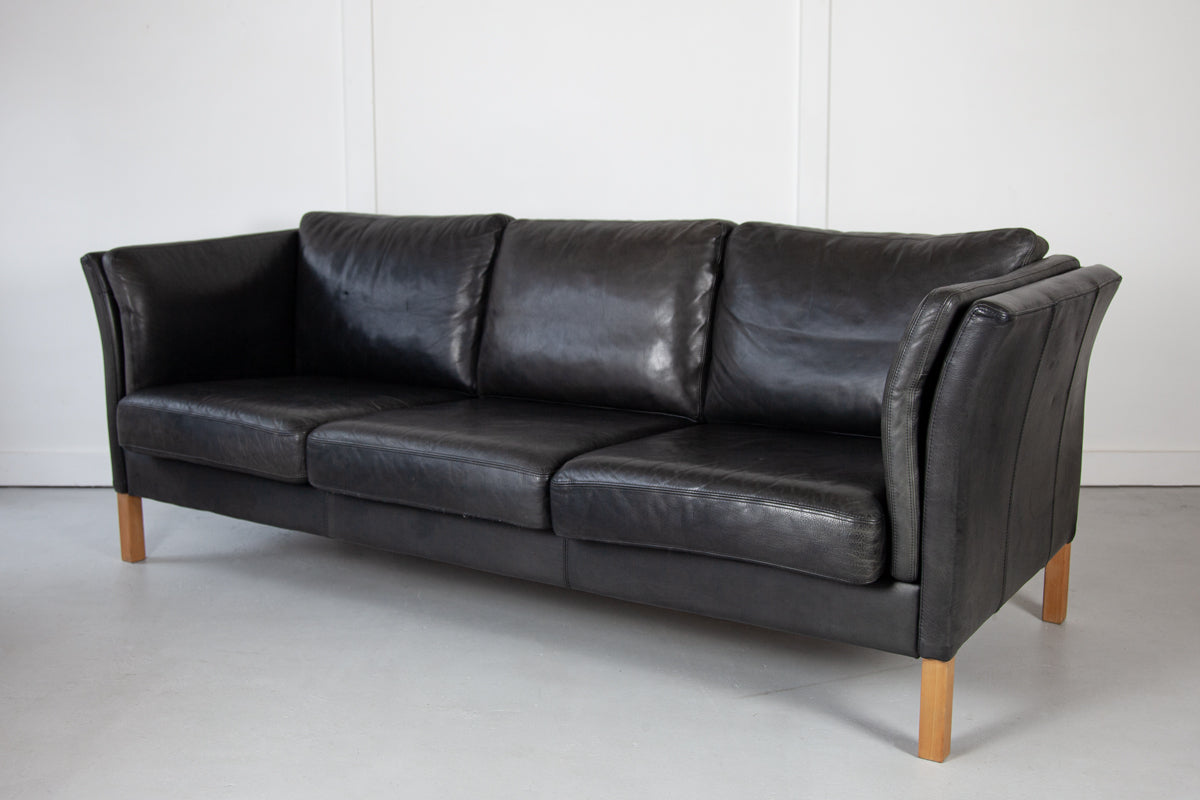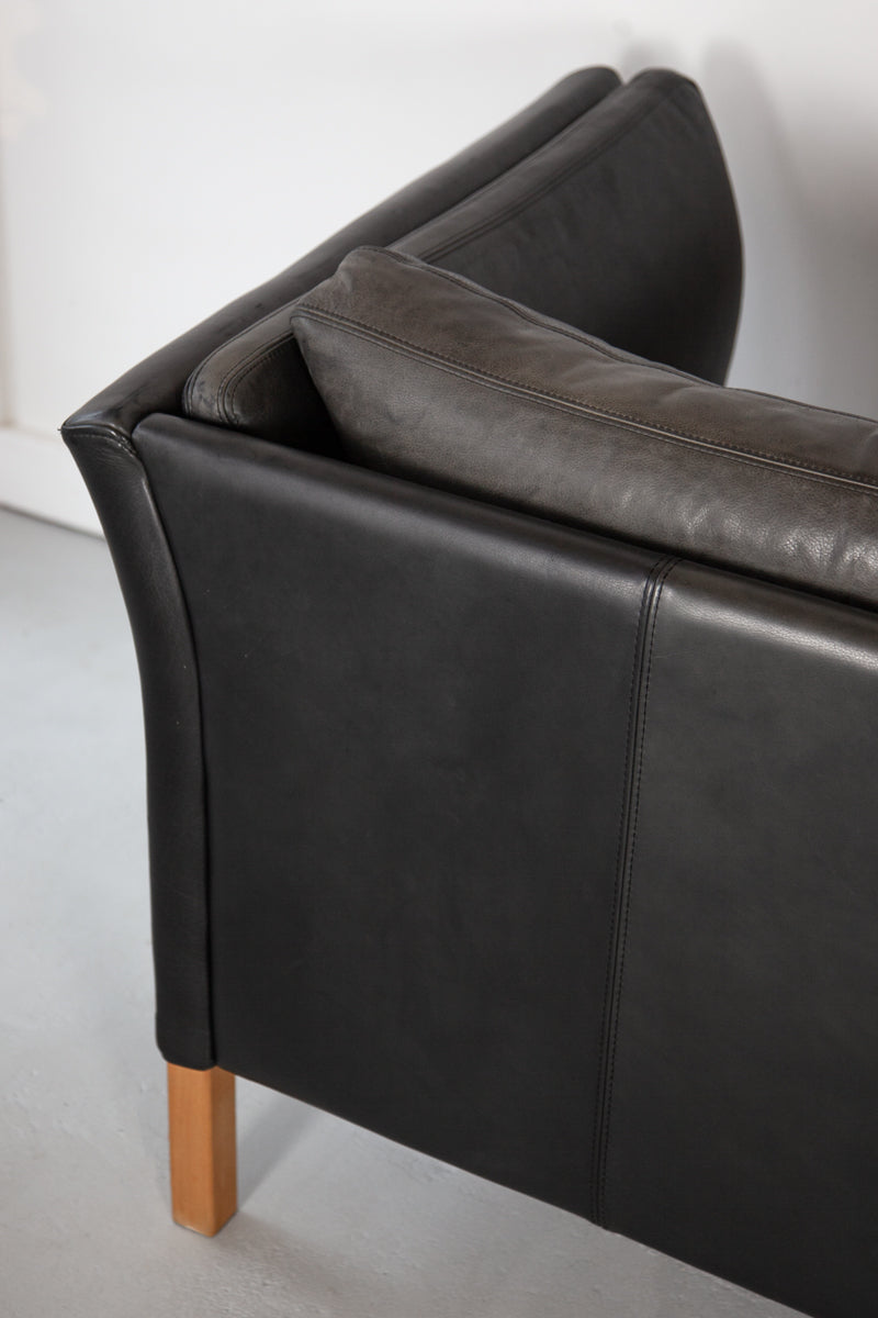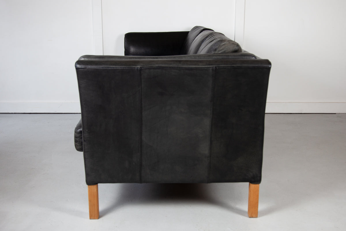 Black Leather Sofa by Mogens Hansen