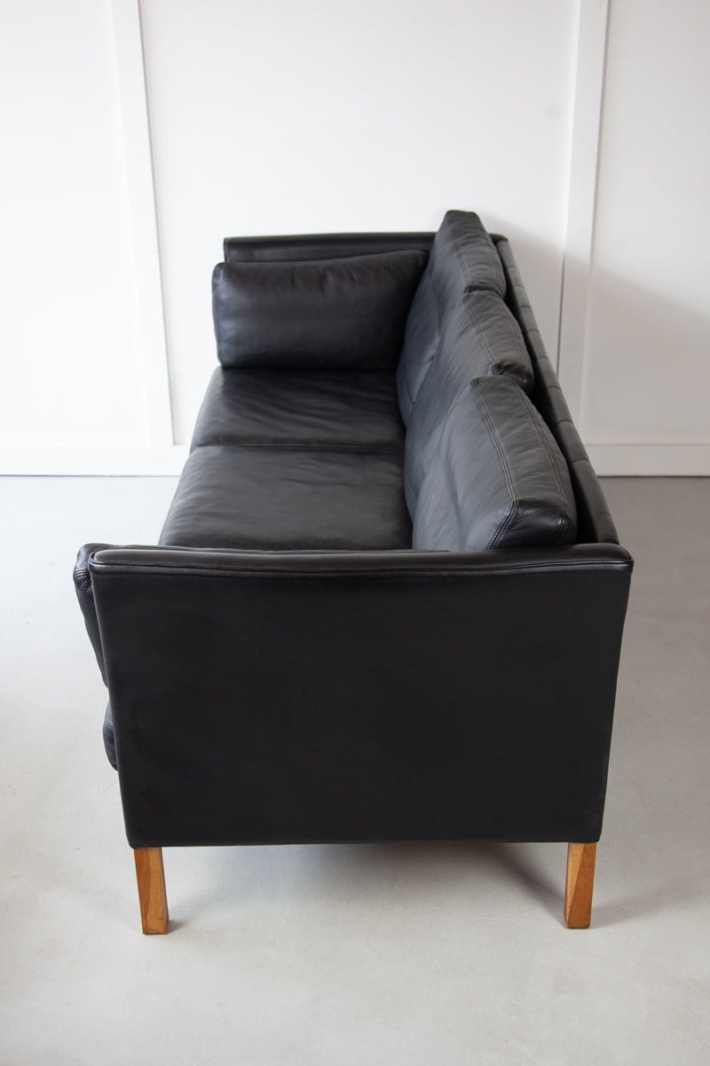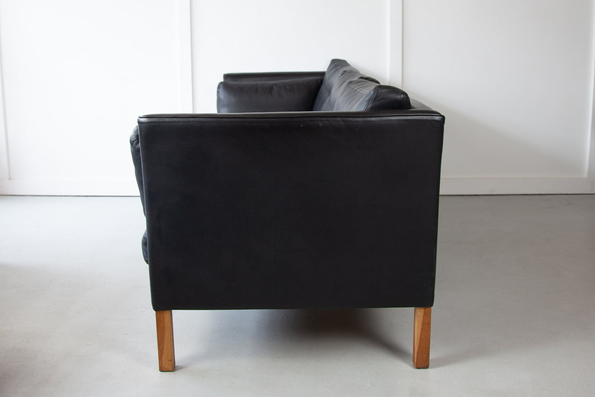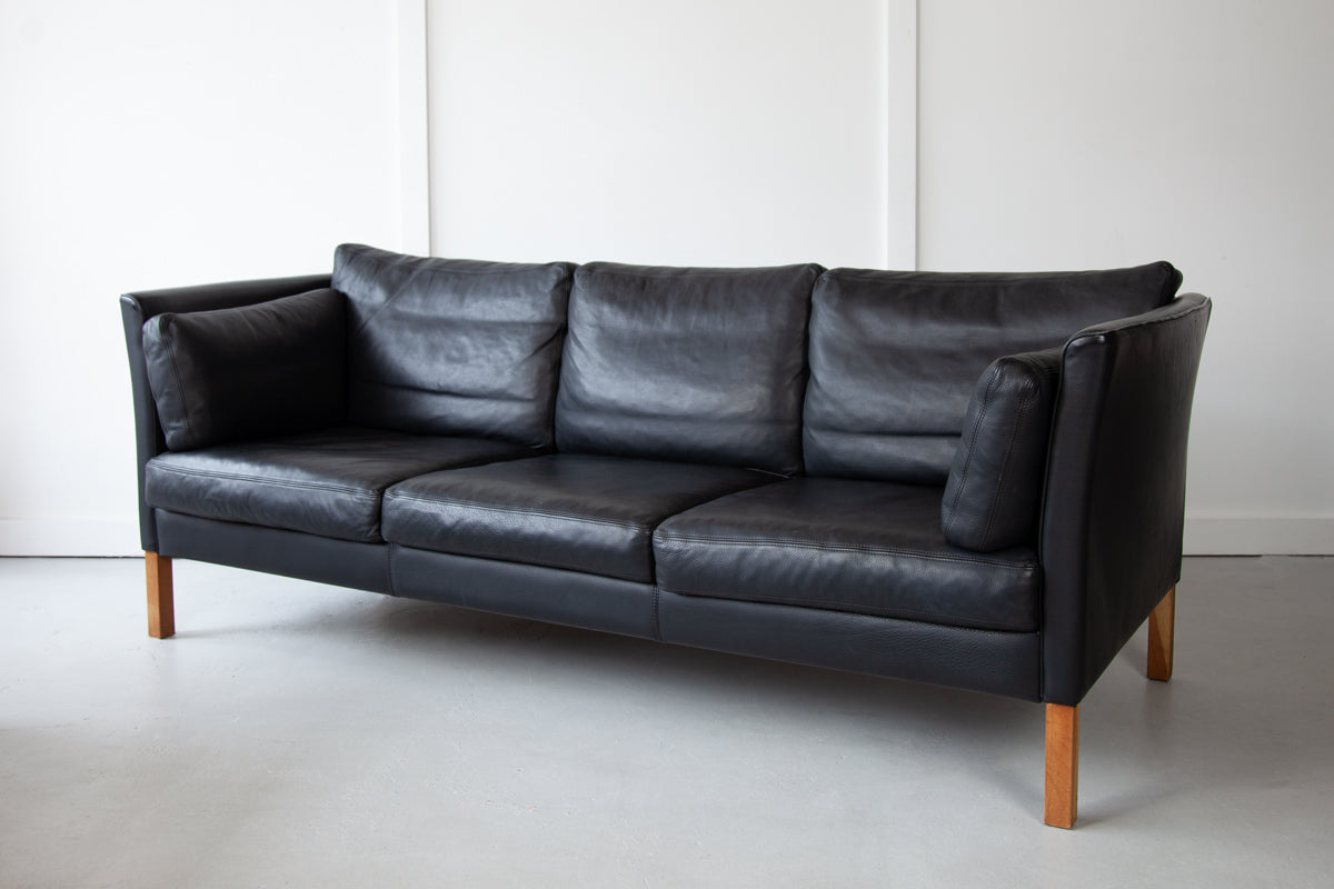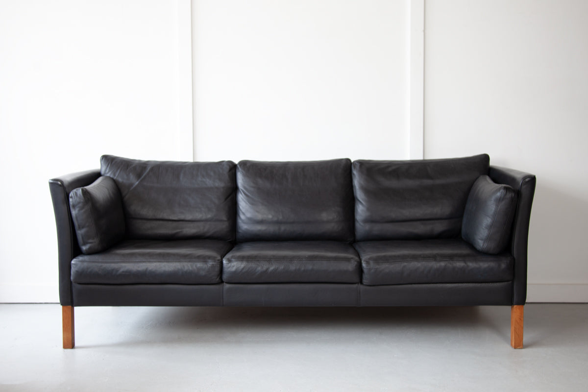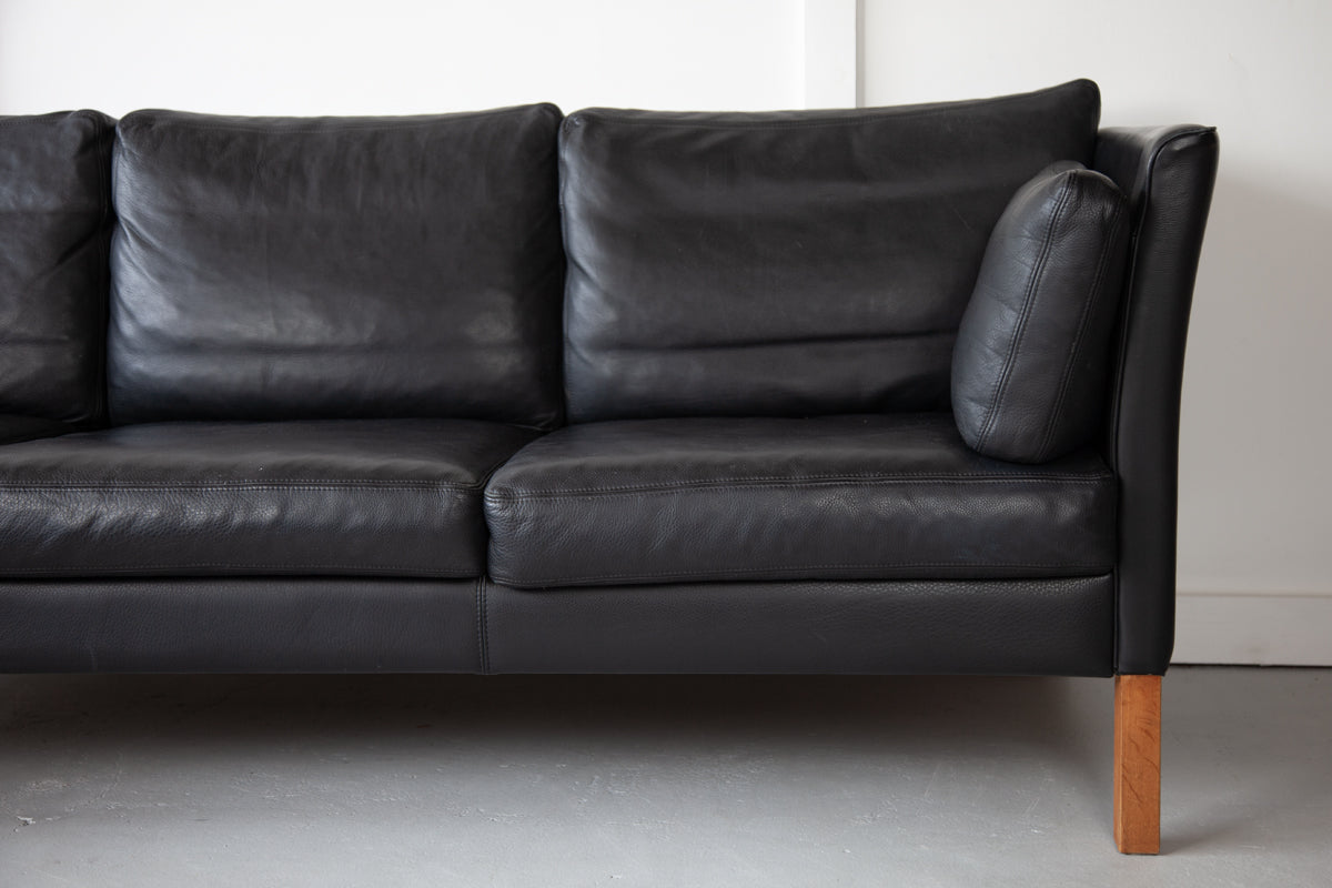 Danish Black Leather Sofa
